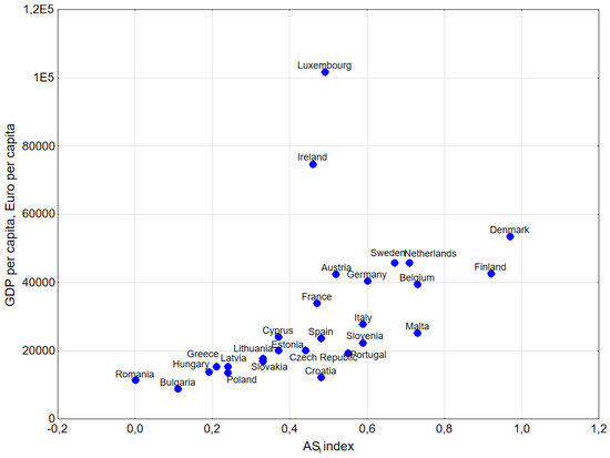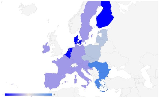 Based on the determined appraisal score (ASi) index values (Equation (19)), the EU-27 countries were evaluated in terms of the level of digital maturity of SMEs from these countries according to the following criterion: