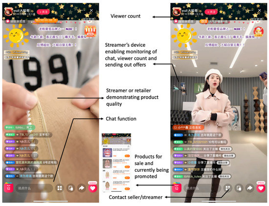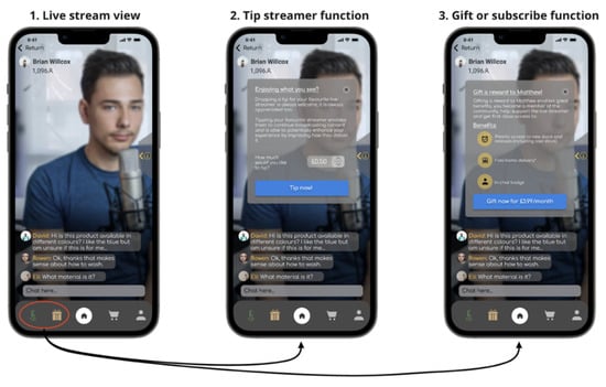 According to Cai and Wohn, live stream commerce is the integration of e-commerce and real-time, synchronous interaction [34]. It allows for the live activity of selling products online via a ‘streamer’ introducing and demonstrating products, in turn motivating purchase intention [35]. It has been described as a novel shopping environment that facilitates a virtual space for viewers to watch and interact with the streamer and vice versa, which in turn promotes user attachment and enables streamers to build up a customer base [36].