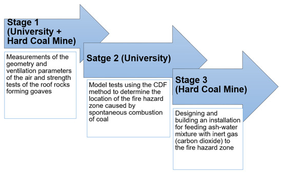 The individual stages of cooperation in developing a method for reducing the fire hazard caused by the spontaneous combustion of coal are shown in Figure 2.