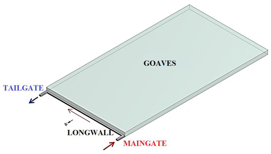 According to the stages presented in Figure 2, the geometry of the examined area and the strength parameters of the roof rocks forming the collapsing zone were determined first, and ventilation parameters were measured. The obtained data were used to develop a model of the examined region, including the longwall, the headings, and the goaves.