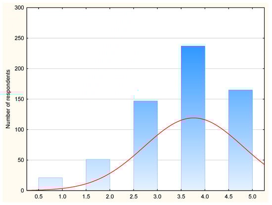 The research shows that the respondents found that it was easier for them to acquire the content of classes conducted in a traditional way (score 3.76) compared to e-learning classes (3.52). It is worth noting that in the case of e-learning classes, a higher standard deviation (at the level of 1.23) compared to traditional classes (1.04) was observed. Histograms for the examined variables are presented in Figure 7 and Figure 8.