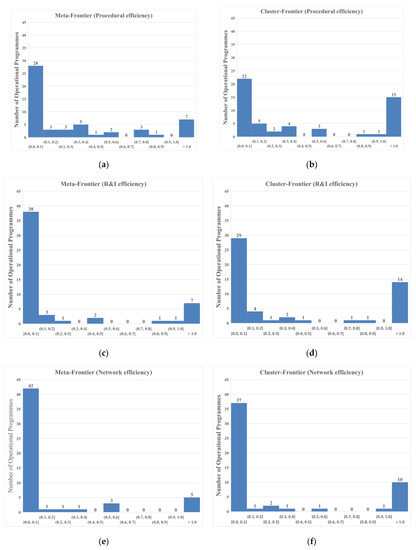 Furthermore, DEA can aid in the identification of the main reasons that preclude efficiency, offering decision-makers relevant insights on how to address them. In this context, [62] utilised DEA to examine the relative spatial disadvantages of the EU’s Level II areas. Gómez-García et al. [61] used employment and productivity rates as outputs, as well as the Stochastic Frontier and DEA approach to assess the pure technical efficiency and global technical efficiency of Objective 1 in the application of SFs in EU regions from 2000 to 2006. Anderson and Stejskal [63] used DEA to appraise the efficiency of diffusion of innovation of EU MS regarding their European Innovation Scoreboard rankings. Also, [60] used the Value-Based DEA methodology that couples DEA with Multiple Criteria Decision Aiding and considers the main factors that may impact the implementation efficiency of SFs in distinct EU regions and countries. More recently, [64] employed the SBM model coupled with cluster analysis for evaluating 102 OPs from 22 EU countries dedicated to the promotion of a Low-carbon economy in SMEs.