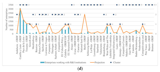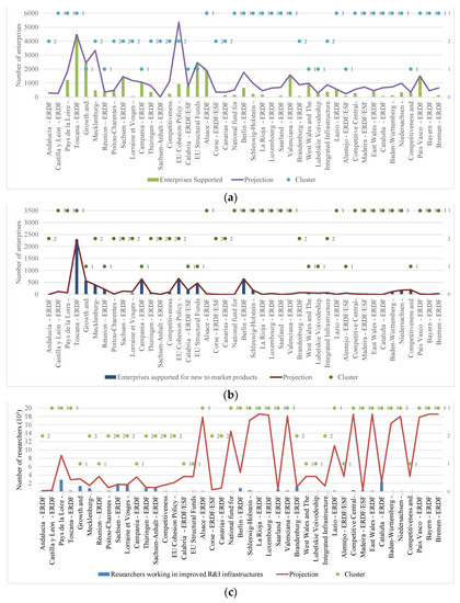 We engaged several stakeholders in the selection of the factors used in the assessment by hosting a guided workshop with various policymakers and MA on the theme “Evaluating Co-financed Intervention Policies in Enterprises.” Furthermore, we conducted a separate examination of regional and national programs, classified into clusters based on the categories of the regions under consideration (i.e., less developed regions, regions of transition, and more developed regions). In this case, whenever the regional categories assigned to the OPs simultaneously belonged to distinct types of regions, these have been classified as regions of transition. Because these are the most up-to-date statistics for the accomplishment indicators, the numbers evaluated are cumulative values from multiple years released on 19 November 2021. The OPs with no missing data were analysed (i.e., the OPs with missing data were not contemplated) in our evaluation, which resulted in the study of 19 countries and 53 programs.
