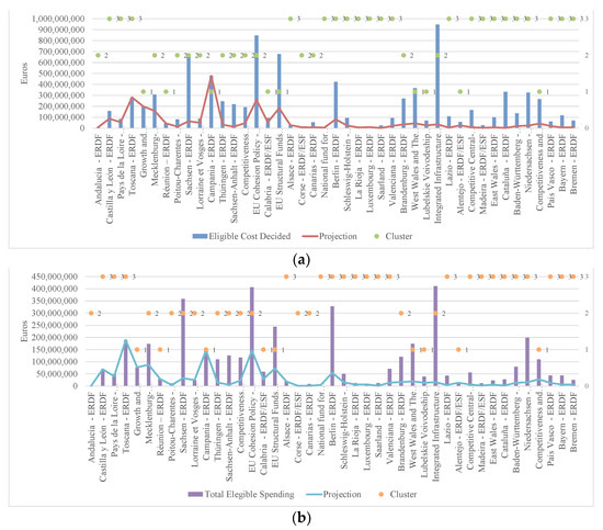 The EU has been pursuing an R&I-led strategy relying on a paradigm in which R&D investment is a key source of higher economic achievements [67]. Under this strategy, the EU has attempted to increase R&D expenditure, with a target of 3% of its GDP. Hence, the financial implementation of SFs, which is an essential prerequisite for efficient policy execution, is included in this study, with special attention paid to the rate of programme implementation [60,81]. Costs that do not meet the appropriate qualifying conditions will not be reimbursed under this framework. These must be confirmed by a certified Controller, who is the entity or responsible person for verifying at the national scale that the co-financed products and services were purchased, that the related spending has been paid, and that the required EU Programme and national regulations were followed.