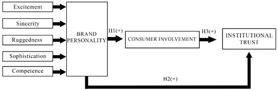 This study utilizes the institution-based trust construct by Liang et al. (2018) [8], which explored the effect of institutional trust toward satisfaction with the brand and repurchase intention. Since trust has previously been confirmed to have a relationship with brand personality [39], it is believed that institutional trust can be affected by brand personality; moreover, different brand personality dimensions can have different effects toward institutional trust. Thus, the following hypothesis is proposed: