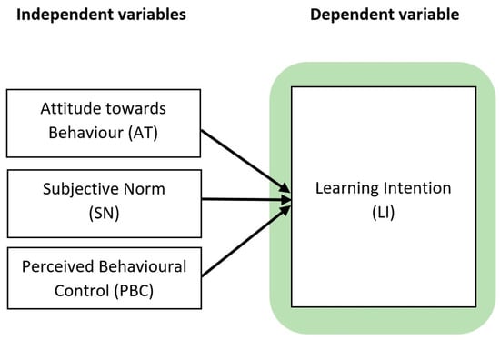 Learning intention has been defined as “a readiness or willingness to undertake a concrete action in order to neutralize an experienced discrepancy and to reach a desired situation by means of training and education” [42]. Past research by Maurer et al., 2003 [39] has shown that participants’ learning intention is a strong predictor of their actual participation in learning activities. However, learning intention is a complex human behavior to be described clearly and comprehended. The Theory of Planned Behavior (TPB) is one of the leading theories that explain human behavior and intention. It is a promising social cognitive model of the different influences on an individual’s decision to perform a particular behavior [53]. The TPB, as its name suggests, is suited for predicting planned behavior. Planned behavior refers to actions that are intentional and deliberate. Past research has indicated that a person’s behavior is a direct positive function of their behavior intention [54,55]. Therefore, the training participants’ learning intention is an excellent predictor of their willingness to engage with and learn from lean education programs.