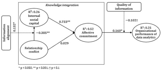 AC affects group interaction [29]. This commitment encourages people to collaborate and carry out assigned tasks and necessary changes to the best of their abilities to achieve organisational goals [29,30]. In contrast, data analytics, which may extract hidden consumer information, provides knowledge to family members that will be integrated and translated into organisational performance [3,61]. As a result, the organisational performance of data analysis represents the value that the organisation and its customers achieve [58].