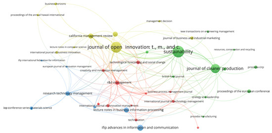 When it comes to studies presenting the results of bibliometric analyses comprising the extensive open innovation research field, there have also been more general and more specific explorations focusing on open innovation [19,28,70,71,72,73,74,75,76,77], open innovation and crowdsourcing [28], open innovation and entrepreneurship [78], knowledge sharing and transfer in an open innovation [79], open innovation and the university [80], open innovation in SMEs [81,82], open innovation and sustainability [83,84,85,86], open eco-innovation [87,88], open innovation and sustainable tourism [89], open innovation and solar energy technologies [90], and open innovation in medical and pharmaceutical research [91].