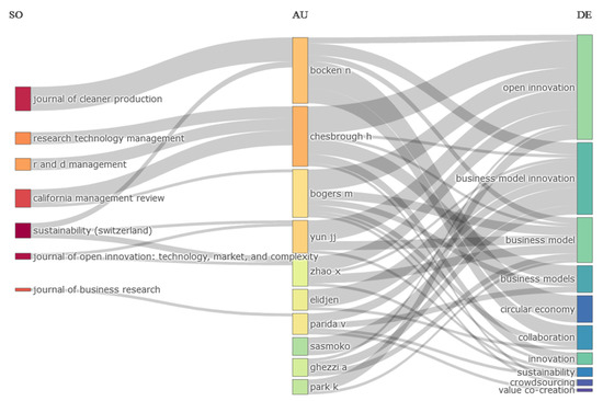 The first document recorded in the Scopus database that mentioned the terms ‘business model’ and ‘open innovation’ together was a conference paper by Chesbrough [103] from 2003. The most cited publications in the research field under consideration were the following documents: