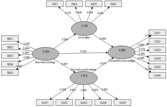 Innovation can mediate the strong relationship between business strategy and competitive advantage. This finding is supported by the value of the t count > t table (2035 > 1975), and a path coefficient of 0.081. This finding proves that innovation needs to be carried out by MSME contractors and real estate as a business strategy to increase the competitive advantage of the organization and be able to compete with other competitors. Innovation is a word that is familiar to our ears and is a keyword in the business world [85]. In this new era of the millennium, where the sales market has moved to the buyer’s market, the role of innovation seems increasingly important and decisive in winning the competition. In the twenty-first century, which can be said to be the real era of globalization, the role of innovation will certainly be more important, although the format is slightly different due to market shifts from local and regional markets to global markets. This finding supports those of previous studies [85,86]. This finding also shows that H5 is accepted.