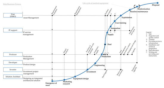 CALS is a concept that combines the principles and technologies of information support of a product life cycle at all its stages, based on the use of an integrated information environment (single information space), providing uniform ways of managing processes and interacting with all participants in this cycle—customers of products (including government agencies and departments), suppliers (manufacturers) of products and operating and maintenance personnel—implemented in accordance with the requirements of the system of international standards governing the rules for this interaction, mainly through electronic data exchange. In other words, CALS technologies represent a modern organization of the processes of development, production, after-sales service and operation of products through information support of their life-cycle processes based on the standardization of data presentation methods at each stage of the life cycle and paperless electronic data exchange. Such technologies give an important basis for the digitalization of modern medical organizations [35].
