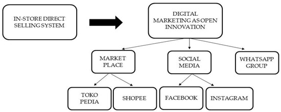 Open innovation designed in a participatory manner by small industries, academics, government, and society aims to improve the economic, social, and environmental performance of small industries after the pandemic [61]. The innovations designed were simple and considered the capacity and capabilities of the small industries, but must be able to create new values, which are generated through the combination market and technology owned by small industries [62]. It should be noted that small industries must also pay attention to the costs incurred for open innovation [63]. In this study, four small industries designed their innovations differently based on their circumstances. The culture for open innovation dynamics can be motivated according to the situation of firms [64]. The wicker industry designed economic innovation through digital marketing as a solution to create a wider market. Products are sold in marketplaces (Tokopedia and Shopee) and social media (Facebook, Instagram, and WhatsApp groups) to improve the company’s economy. In the pandemic era, business has indeed experienced significant changes; digital marketing strategies are promising. It helps both parties, both consumers and producers, during the pandemic. Consumers can get the products they want without leaving their houses, while producers can sell their products without consumers have to come directly [65].