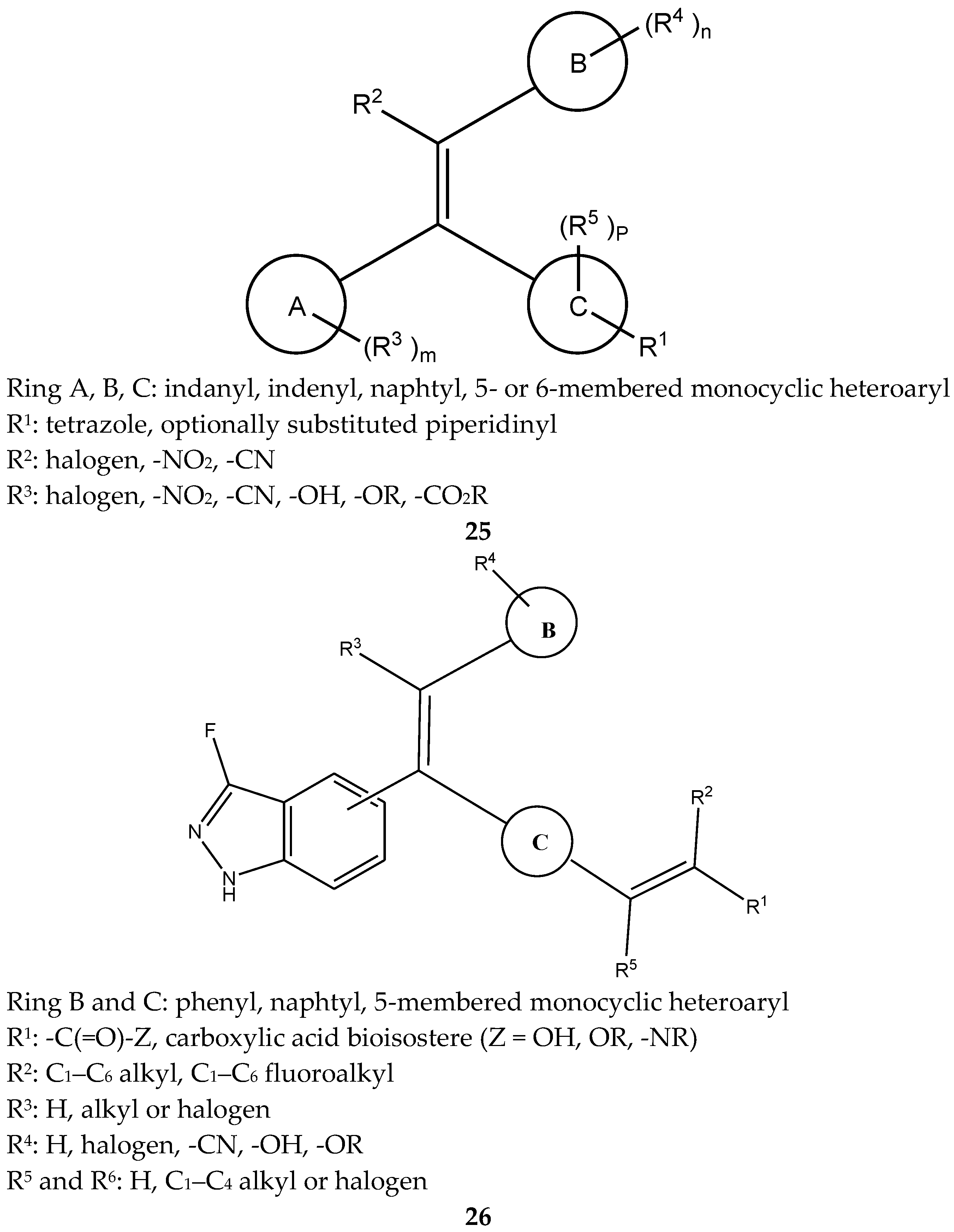 A group of 1,1,2-triarylolefines were patented as estrogen receptor antagonists (25, Figure 10). Most of the synthesized compounds of this group had high anti-estrogenic effects with minimal or no estrogen receptor agonist activity [47].