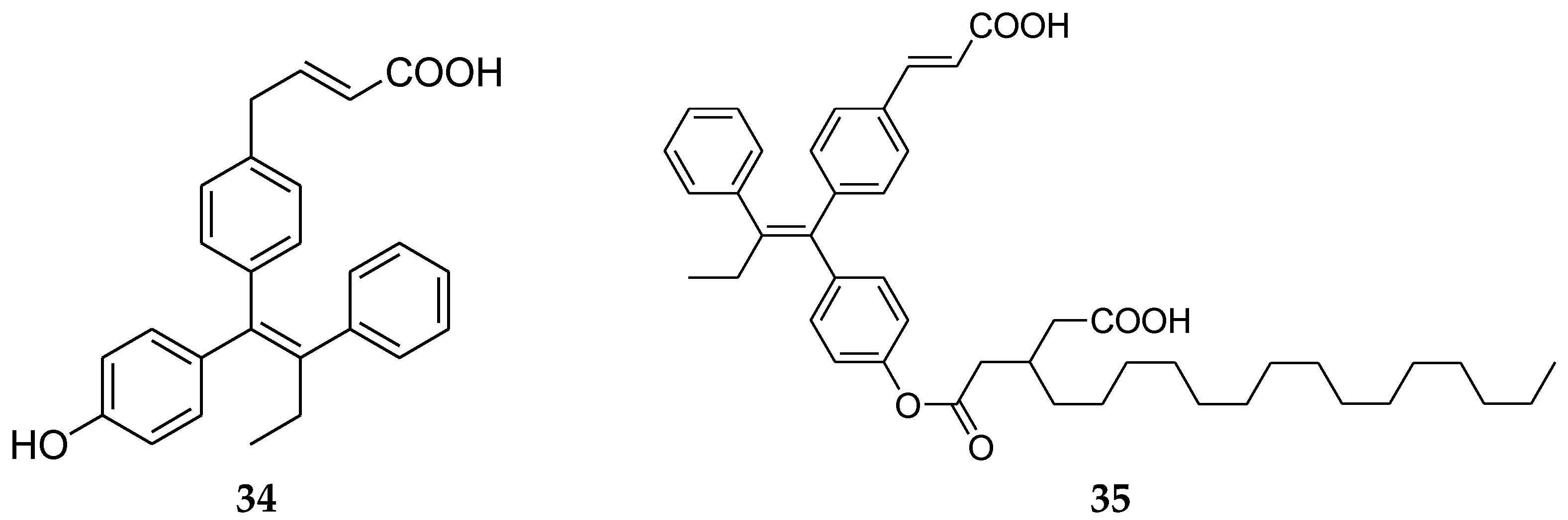SERD (34) and fatty acid-SERD conjugate (35).