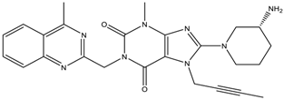 - Scheen, A.J. Linagliptin plus metformin: A pharmacokinetic and pharmacodynamic evaluation. Expert Opin. Drug Metab. Toxicol. 2013, 9, 363–377. [Google Scholar] [CrossRef] [PubMed]