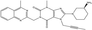 Linagliptin (LGP) is a class of DPP-4 (Dipeptidyl peptidase-4) inhibitor with a unique pharmacokinetic (PK) profile, characterized by negligible renal excretion, and used in the treatment of type II diabetes as glucagon increases blood glucose levels, while DPP-4 inhibitors reduce glucagon and blood glucose levels. The mechanism of DPP-4 inhibitors is to increase incretin levels, GLP-1 and GIP (Glucagon-like peptide-1 and Gastric inhibitory peptide) [,,], which inhibit glucagon release, which in turn increases insulin secretion, decreases gastric emptying, and hence decreases blood glucose levels.