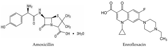Chemical structure of amoxicillin and enrofloxacin.