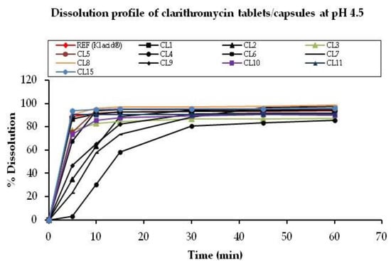 - Zhang, X.; Chen, X.; Hu, L.; Tang, X.; Li, S.; Zhong, D. Evaluation of in vitro dissolution and in vivo absorption for two different film-coated pellets of clarithromycin. Arch. Pharm. Res. 2005, 28, 977–982. [Google Scholar] [CrossRef] [PubMed]