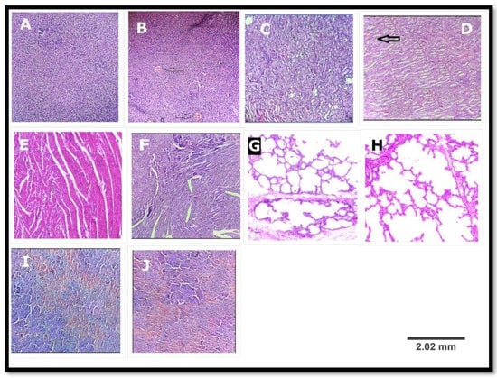 The organs, namely liver, heart, spleen, lung, and kidney were carefully excised and weighed. These organs were preserved in a fixation medium of 10% buffered formalin for histopathological study. The organ paraffin sections were prepared, stained with haematoxylin and eosin, and processed for light microscope following the techniquein [23].