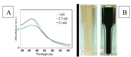 - Goudarzi, M.; Mir, N.; Mousavi-Kamazani, M.; Bagheri, S.; Salavati-Niasari, M. Biosynthesis and Characterization of Silver Nanoparticles Prepared from Two Novel Natural Precursors by Facile Thermal Decomposition Methods. Sci. Rep. 2016, 6, 32539. [Google Scholar] [CrossRef] [PubMed]
