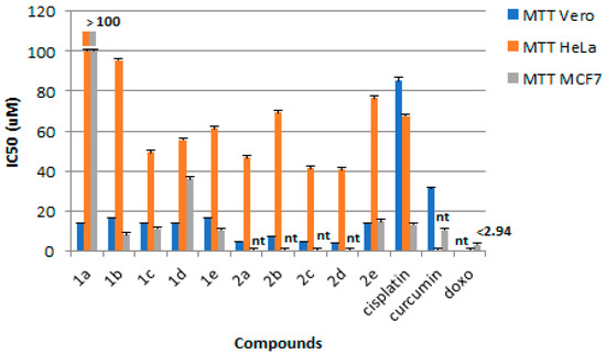 Cytotoxicity of the synthesized compounds against Vero, HeLa, and MCF7 Cell lines. nt = not tested.