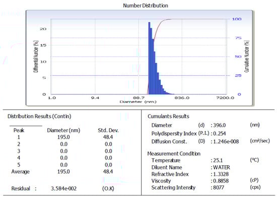 Particle size analysis graphics of arabica coffee ground nanoparticles.