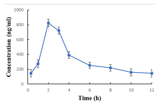 It was noticed in this investigation that Tmax values of all patients were comparable and was found to be 2 h (Table 3). This finding may be due to the blood sampling schedule (Table 2) since according to the purpose and design of this study, blood samples were obtained at 1, 2, and 3 h post-dosing and no blood sample was required to be taken at shorter time interval (i.e., 1.25, 1.50, 1.75, 2.25, 2.5, and 2.75) to notice the difference (if any) between Tmax values of the patients.