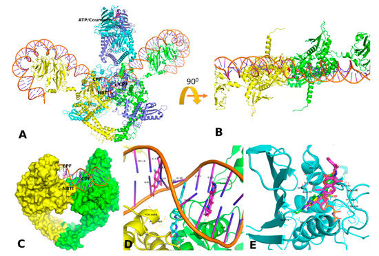 - Vanden Broeck, A.; McEwen, A.G.; Chebaro, Y.; Potier, N.; Lamour, V. Structural Basis for DNA Gyrase Interaction with Coumermycin A1. J. Med. Chem. 2019, 62, 4225–4231. [Google Scholar] [CrossRef] [PubMed]