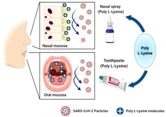 Ԑ-Poly-l-lysine formulated in a toothpaste and a nasal spray can pose a new platform for COVID-19 prophylaxis. Created by Biorender.com.