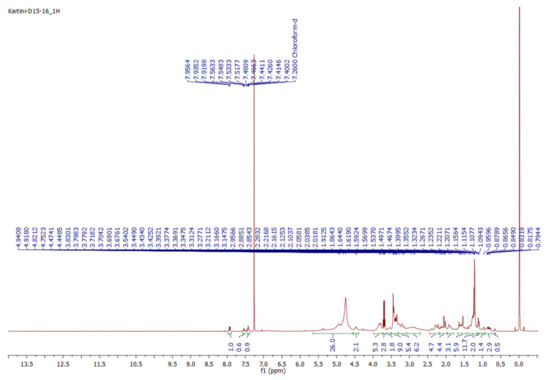Subfraction D1 contained steroid compounds that produce yellowish-white solids and are characterized using FTIR and 1H-NMR, showing similarities with the calotropone compound (Figure 3b) as found before, in which its structure was identified as 12β-O-benzoyl-3β,14β,17β-trihydroxypregnane-20-one and has 468.59 g/mol [14].