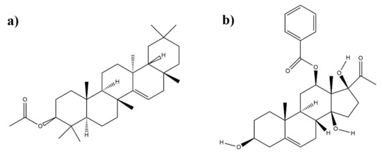 Structures of (a) taraxerol acetate and (b) calotropone.