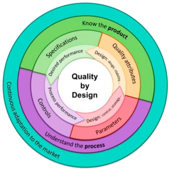 The ICH guideline Q8 (R2) defines the QbD model as a systematic approach to Pharmaceutical Development, which begins with predefined objectives and places special emphasis on understanding the product, the process, and its controls [36]. Moreover, the FDA considers that quality in a Drug Quality System cannot be evaluated or determined in a product but must be introduced and promoted from its design [37].