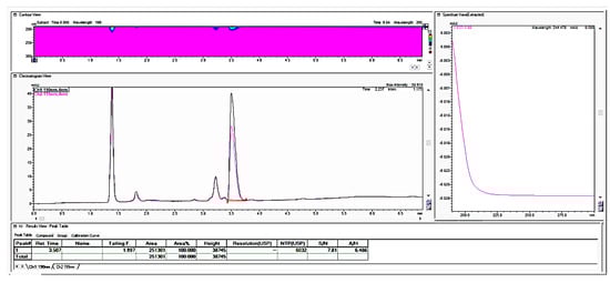 Other used instruments were an Analytical Balance Mettler Toledo AG285, pH–meter Metrohm 827, and IKA orbital shaker KS4000i. A double-beam Shimadzu UV-Visible spectrophotometer with a spectral bandwidth of 1 nm and a wavelength accuracy ±0.5 nm, Model–UV 1800 (Japan), Software UV-Probe 2.62, and a pair of 1 cm matched quartz cells were used to measure the absorbance of the resulting solution. Designed in accordance with the governing Japanese and European Pharmacopoeia, the new UV-1800 UV-VIS spectrophotometer achieves a resolution of 1 nm, the highest in its class in a compact design. The used nylon and regenerated cellulose RC 0.2 μm and 0.45 μm syringe filters were purchased from Agilent Technologies (Santa Clara, CA, USA).