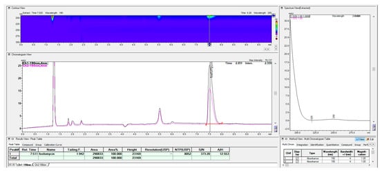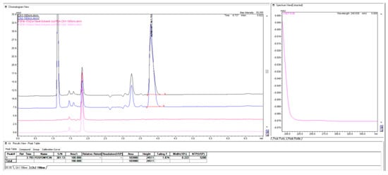 In our experimental work, the following HPLC columns were tested: LiChrosper CN 250 mm × 4 mm, 5 μm; Partisil SAX 250 mm × 4.6 mm 10 μm; Discovery C18 150 mm × 4.6 mm, 5 μm; Discovery C18 250 mm × 4.6 mm, 5 μm; Supelcosil ABZ plus 150 mm × 4.6 mm, 5 μm. Mentioned columns were purchased from Supelco, MERCK Darmstadt, Germany. Zorbax C18 Eclipse xdb 150 mm × 4.6 mm, 5 μm; Zorbax NH2-amino 250 mm × 4.6 mm, 5 μm; Zorbax SB-CN 250 mm × 4.6 mm, 5 μm. These columns were purchased from Agilent Technologies Corporation, USA. Nucleosil AB 250 mm × 4 mm, 5 μm was purchased from Macherey-Nagel, Germany. YMC-Triart C18 150 mm × 4.6 mm, 3 μm was purchased from YMC-VWR, Germany. Waters 5SRP CN 250 mm × 4.6 mm, 5 μm, Waters XTerra C18 MS 250 mm × 4.6 mm, 5 μm, and Waters XTerra 100 mm × 4.6 mm, 3.5 μm, were purchased from Waters Corporation, USA. Four different HPLC/DAD systems were used for analyses: UPLC System Shimadzu Nexera-I LC 2040C 3D Plus-LabSolution version 5.97, Shimadzu LC_40, and Varian model Pro Star PDA 330 with Varian Star software version 6.31; and Dionex Ultimate 3000 UHPLC system controlled by Dionex Chromeleon software (version 6.80, Dionex-ThermoFisher Scientific, Waltham, MA, USA).