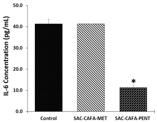 2.2.5. Effects of the hybrids SAC-CAFA-MET and SAC-CAFA-PENT on Expression of Interleukin-6 (IL-6)