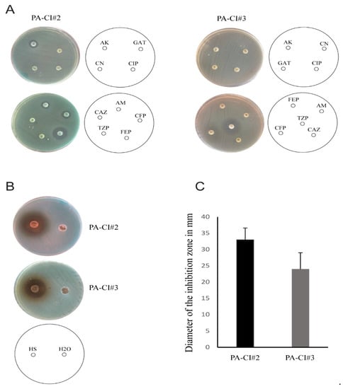 3.9. Antibacterial Activity of HS on Burn Wound Isolates of P. aeruginosa