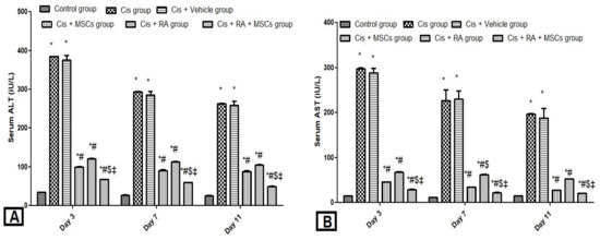 APA StyleAzzam, M. M., Hussein, A. M., Marghani, B. H., Barakat, N. M., Khedr, M. M. M., & Heakel, N. A. (2022). Retinoic Acid Potentiates the Therapeutic Efficiency of Bone Marrow-Derived Mesenchymal Stem Cells (BM-MSCs) against Cisplatin-Induced Hepatotoxicity in Rats. Scientia Pharmaceutica, 90(4), 58. https://doi.org/10.3390/scipharm90040058