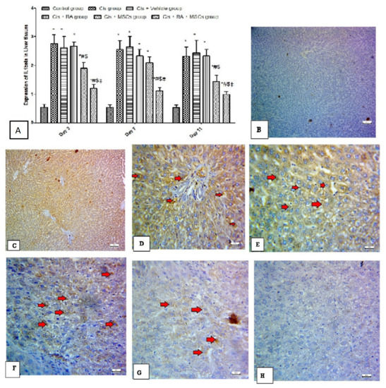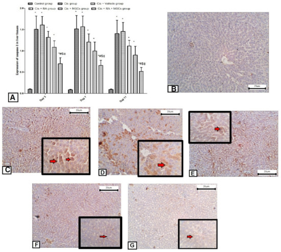 Chicago/Turabian StyleAzzam, Maha M., Abdelaziz M. Hussein, Basma H. Marghani, Nashwa M. Barakat, Mohsen M. M. Khedr, and Nabil Abu Heakel. 2022. "Retinoic Acid Potentiates the Therapeutic Efficiency of Bone Marrow-Derived Mesenchymal Stem Cells (BM-MSCs) against Cisplatin-Induced Hepatotoxicity in Rats" Scientia Pharmaceutica 90, no. 4: 58. https://doi.org/10.3390/scipharm90040058