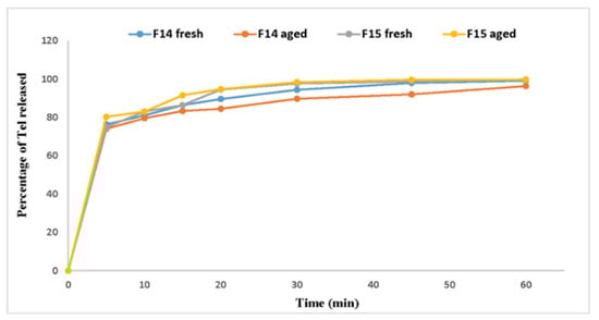 Figure 7. Dissolution profile of fresh and aged formulae.