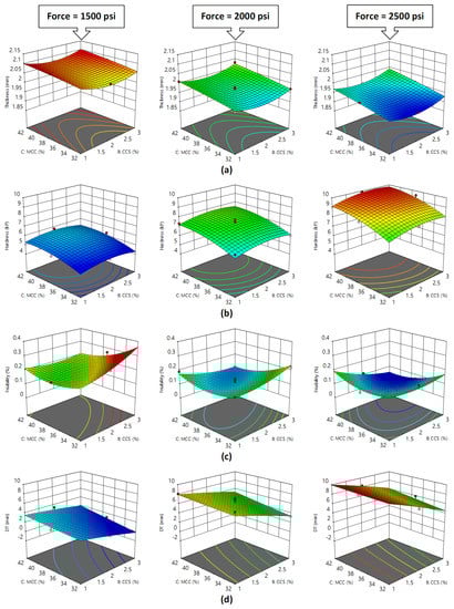 3.2. Impact of Factors on Black Pepper Extract Tablet Properties Obtained from Box–Behnken Design