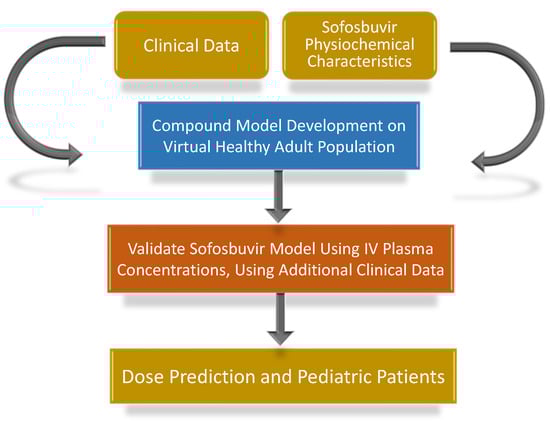 Afterward, the model was validated using different sets of published clinical data. Subsequently, a literature search for sofosbuvir clinical PK data in the pediatric population was carried out to validate the sofosbuvir model in pediatrics [17] and to use it to predict a pediatric dose and compare it to the approved FDA dose.