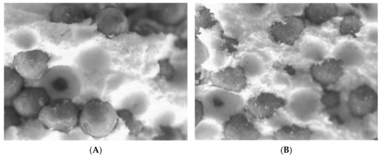 Image analysis results from formulations F6 (A) and F7 (B); scale-magnification ×50.