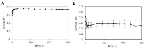 Overall, these results demonstrate that the Zn/Ag-electrode-printed iontophoretic patch has a consistent and stable performance in terms of voltage and current output, indicating its potential for use as a reliable and effective non-invasive drug delivery system.