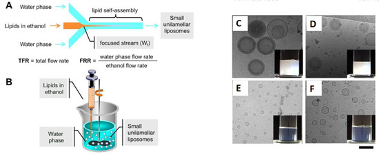 - Carugo, D.; Bottaro, E.; Owen, J.; Stride, E.; Nastruzzi, C. Liposome production by microfluidics: Potential and limiting factors. Sci. Rep. 2016, 6, 25876. [Google Scholar] [CrossRef]