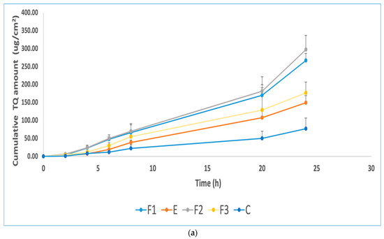 where Jss is the steady-state flux (μg cm−2h−1), and C0 is the concentration of TQ in the donor compartment (µg mL−1).