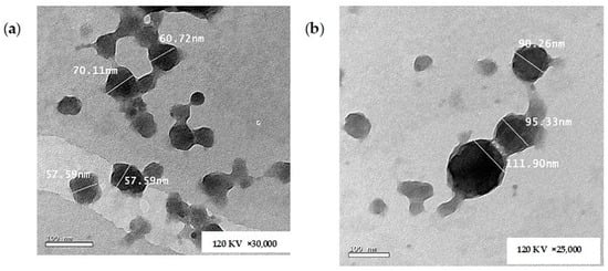 The shape and morphology of the optimized CS NP formulae were examined using an HR-TEM instrument (Jeol Electron Microscope, JEM-1010, Tokyo, Japan). A droplet of the nanosuspension was placed on a carbon film-covered copper grid (200-mesh) and stained using 2% phosphotungstic acid. A filter paper placed at the edge of the copper grid was used to remove any excess liquid. Subsequently, the sample was air-dried for about 5 min. before observation by TEM [,,].