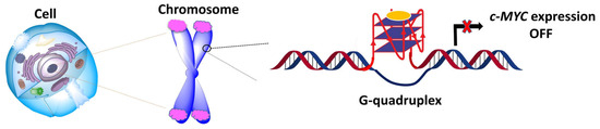 Due to c-MYC encoding a transcriptional factor that controls the expression of multiple genes responsible for fundamental cellular functions, like progression of the cell cycle, growth of the cell as well as differentiation, DNA replication, production of mRNA, and overall transcription, the deregulation of c-MYC is also implicated in numerous cancers [11,12,13]. c-MYC processes fundamental to cellular biology functions result in progressions of the cell cycle, growth of the cell and differentiation, apoptosis, metabolism, replication of DNA as well as the production of messenger RNA, and overall transcription [14,15]. G-quadruplex ligands will be briefly reviewed in this paper, with an emphasis on the progress made by macrocyclic ligands.