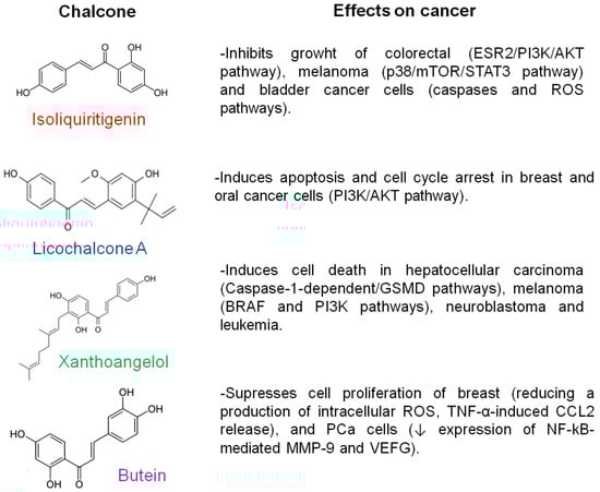 - de Souza, P.S.; Bibá, G.C.C.; Melo, E.D.D.N.; Muzitano, M.F. Chalcones against the Hallmarks of Cancer: A Mini-Review. Nat. Prod. Res. 2022, 36, 4809–4826. [Google Scholar] [CrossRef]
