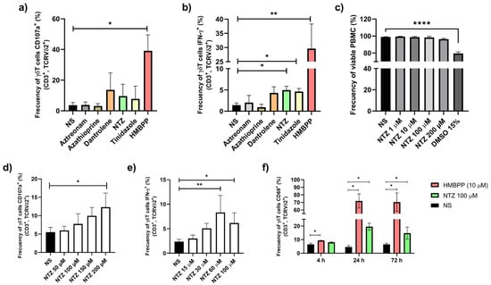 3.3. NTZ Promotes the Activation of Vγ9Vδ2 T Cells When Incubated In Vitro