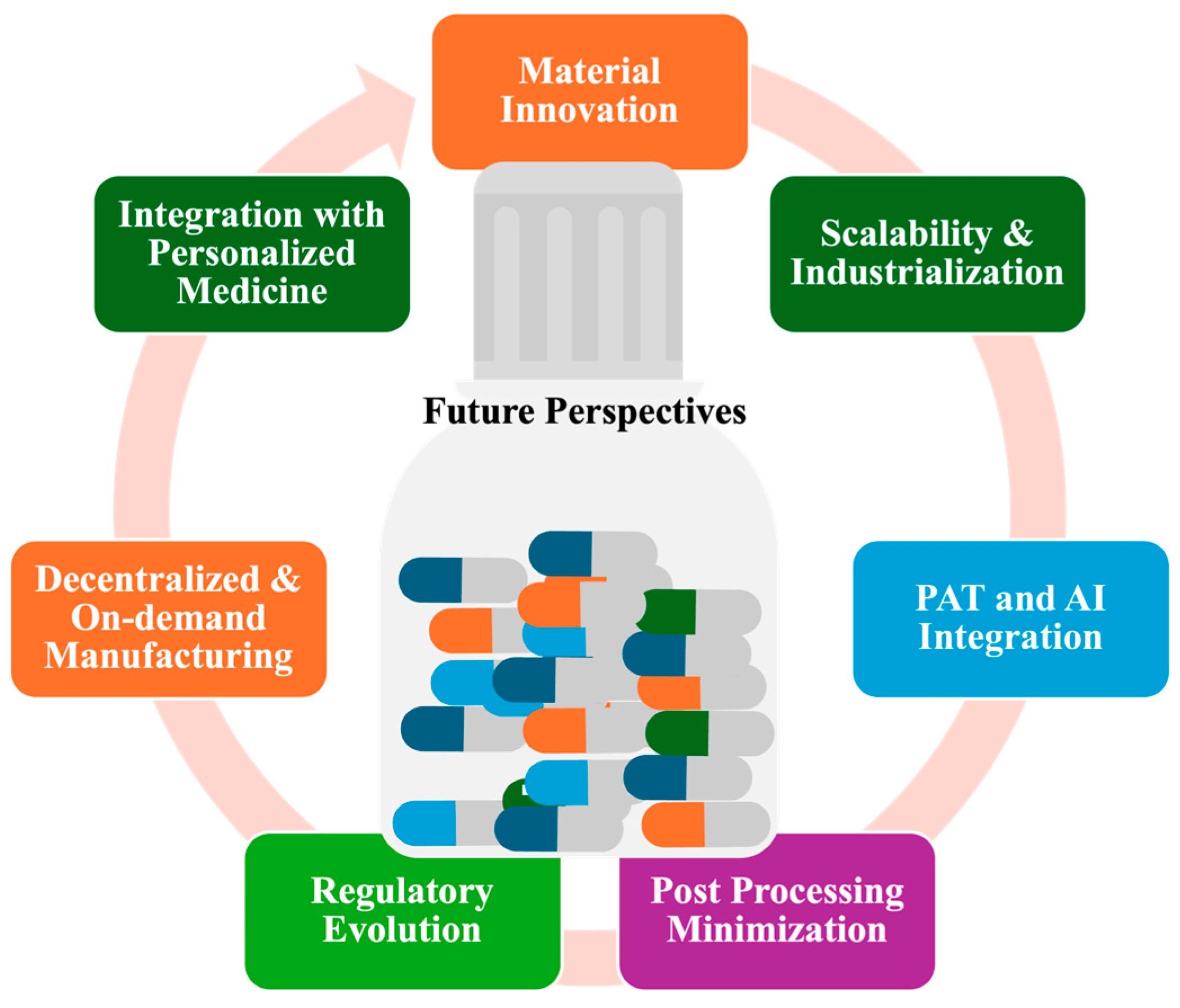 Chicago/Turabian StyleVidiyala, Nithin, Pavani Sunkishala, Preethi Mandati, Prashanth Parupathi, and Dinesh Nyavanandi. 2025. "Integrating 3D Printing and Additive Manufacturing into Personalized Medicine for Pharmaceuticals: Opportunities, Limitations, and Future Perspectives" Scientia Pharmaceutica 93, no. 4: 61. https://doi.org/10.3390/scipharm93040061